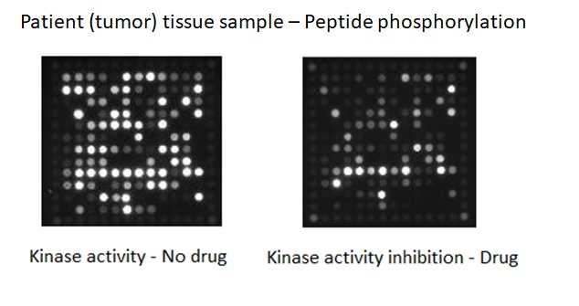 Kinases are the most intensively studied protein targets. We have developed a unique method to understand them. Our sensitive platform uses lysates obtained from only a few thousand cells or small amounts (2ug) of animal, xenografts or human tissues and cells to simultaneously determine the activity of all kinases present in these lysates.