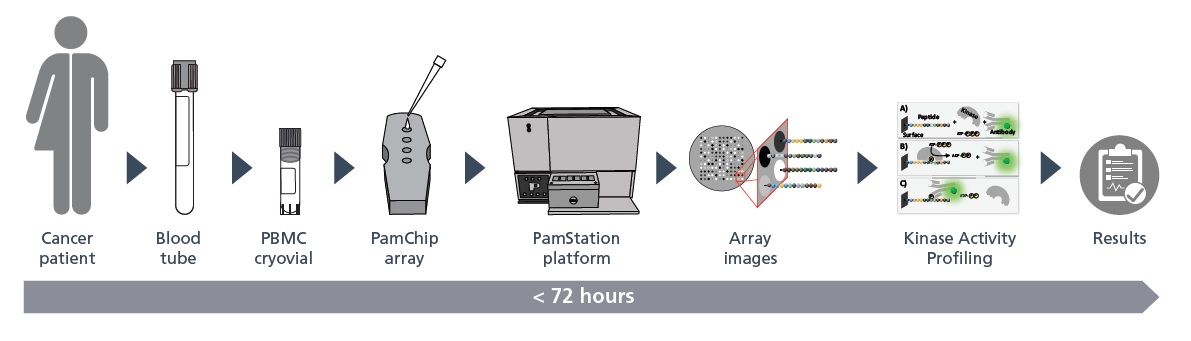 Kinases play a crucial role in immune checkpoint regulation and therefore can predict a patient’s response before immune checkpoint inhibitor (ICI) therapy is started. The response to ICI therapy is driven by an individual patient’s kinase activity profile and can give key information to clinicians in support of treatment decisions.